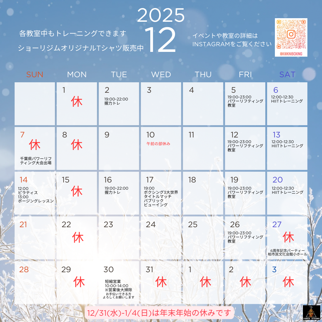 12/31(水)~2026/1/4(日) は年末年始のお休みです